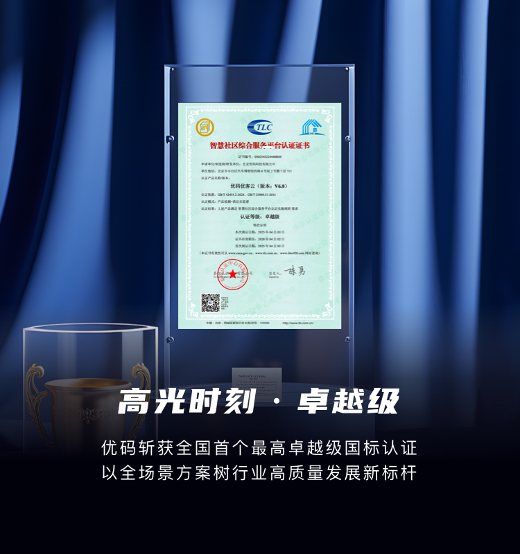 優(yōu)碼斬獲全國首個最高卓越級國標(biāo)認(rèn)證!以全場景方案樹行業(yè)高質(zhì)量發(fā)展新標(biāo)桿